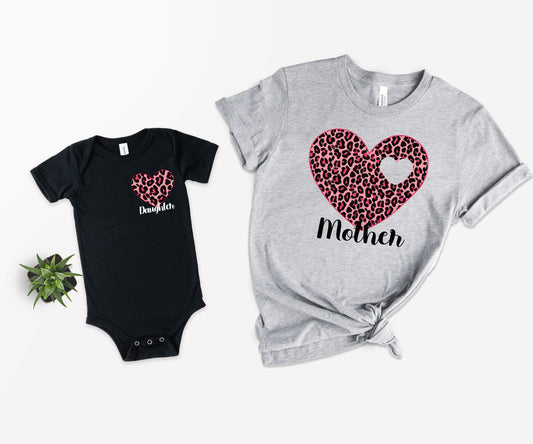 Matching Family Heart Shirts, Mama Leopard Shirt, Matching Mom And Daughter Gifts