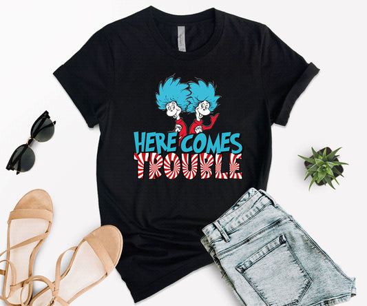 Here Comes Trouble Shirt, Thing 1 Thing 2 T-Shirt, Reading Lovers Gifts