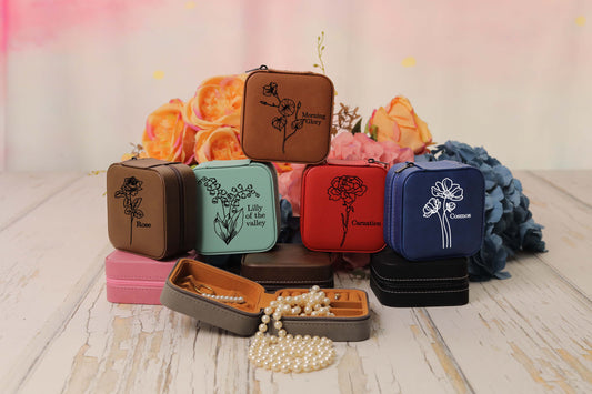 Birth Flower Jewelry Box, Personalized Jewelry Box, Travel Jewelry Box
