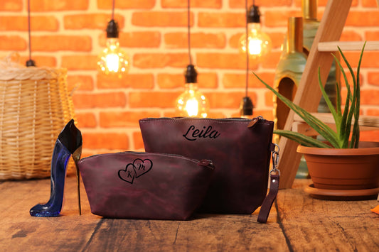 Leather Cosmetic Bags, Leather Toiletry Bag Women's, Leather Makeup Bag