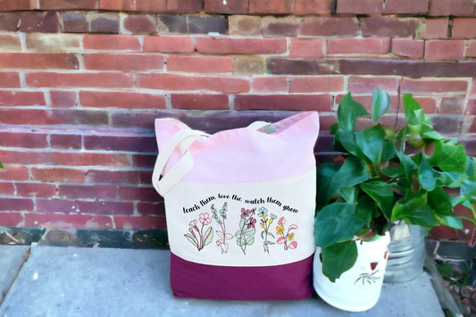 Tote For Teachers, Canvas Floral Tote Bag, Tri Color Tote Bag