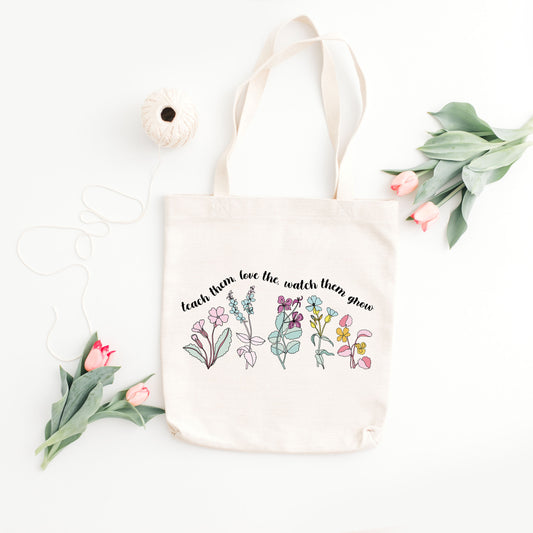 Teach Them Love Them Watch Them Grow, Vintage Floral Bag, Tote For Teachers