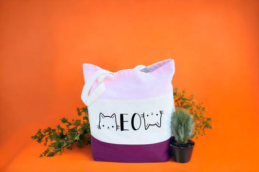 Cat Tote Bag, Cat Lover Gift, Meow Tote Bag, Tri Color Tote Bag